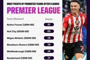 英超历史升班马前9轮战绩:
