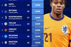 3、博特曼(纽卡,中卫):4000万欧