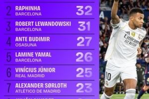 2、拉菲尼亚(巴萨):32球